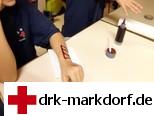 Verletzungen schminken, damit sie auch in der Lage sind diese Verletzungen zu Beschreiben. Die Übung diente als