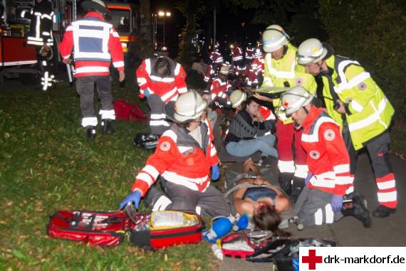 Am Freitagabend des 27.9. fand eine Großübung am Aquastaad statt. Beteiligt waren die Bereitschaften des DRK
