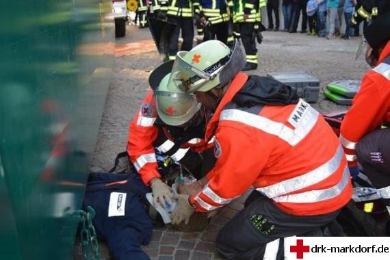 betreute und versorgte ein 4-Köpfiges Team aus Sanitätern und Notarzt zusammen mit der Feuerwehr die