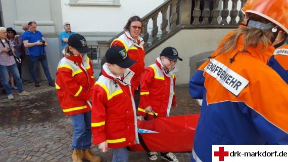 Jugendrotkreuz. Die Jugendfeuerwehr zeigte einen Löschangriff mit Menschenrettung und unsere Jugend