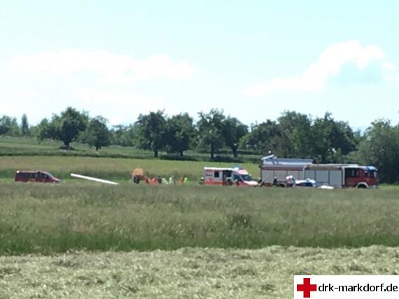 Segelflugzeug, welches mit einem Piloten an Bord im Rahmen des Startvorganges aus ca. 30m Höhe abgestürzt